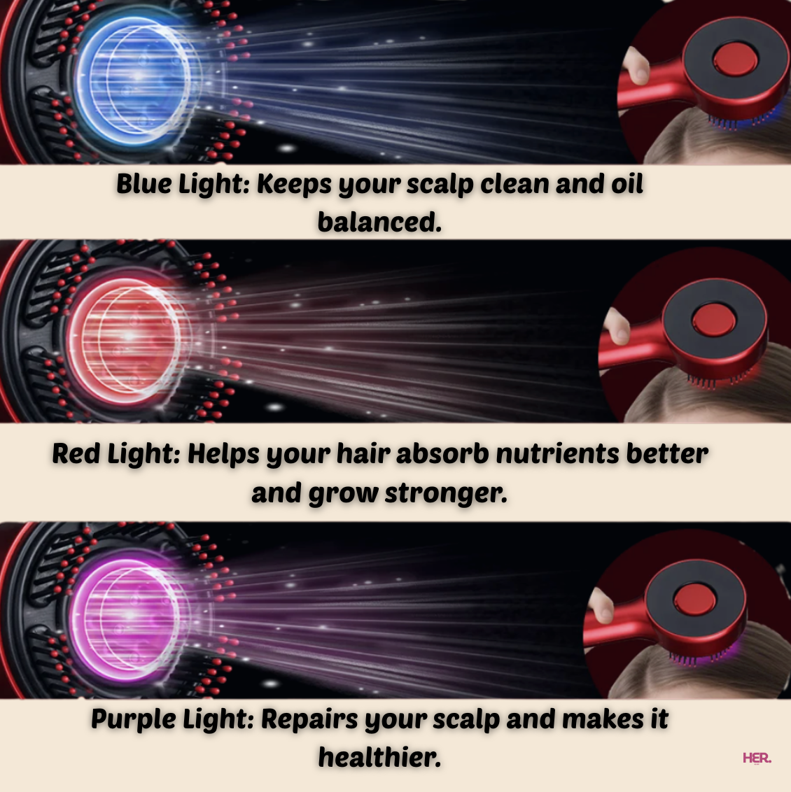 ✅ 3 light therapies (red, blue, purple) – soothe scalp & support growth